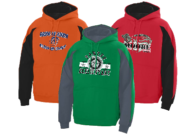 One of two great options for a very athletic look in hoodies. Contrast hoodies have white panels contrasting the main color. These are a great option to pair with school colors.