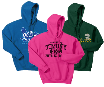 Perfect in winter months, and a great favorite in spriti wear programs. Hoodies are a great addition, and are available in many colors. Brands include Gildan, Jerzees, Next Level, and many more.